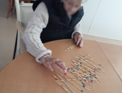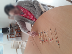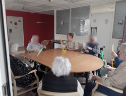 Cet après midi au PASA, nous avons fait plusieurs ateliers : jeu de société ( triomino, domino, mikado) où les résidents ont pu s'entraidaient et l’après midi s'est poursuivie d'un côté par une activité motrice badminton et de l'autre côté, une soignante a réalisé un quiz musical. Un bon moment partagé qui s'est terminé par la visite des poneys, qui a pu donner le sourire à nombreux d'entre nous.