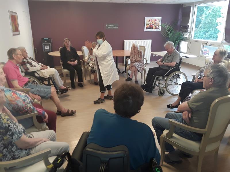 L'animation est un des axes de notre Projet d'Etablissement. L'animatrice organise et coordonne de nombreuses activités variées qui rythment les journées.Par exemple dernièrement durant la journée les résidents ont pu participer à l'activité photos mystère (découvrir la photo cachée), écouter les titres de chansons ( donner l'interprète ou le titre), chanter tous ensemble lors de l' anniversaire pour une résidente, puis finir la journée par une séance de gym autonomie.