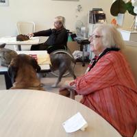 Publiée le 02/11/2020La médiation animale est un moment fort pour les résidents. Séverine notre intervenante vient avec des lapins, des chiens, un oiseaux et parfois un poney... La médiation animale est une pratique qui vise à mettre en contact un animal avec une personne fragilisée (en situation de handicap [...] Lire la suite