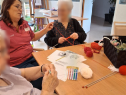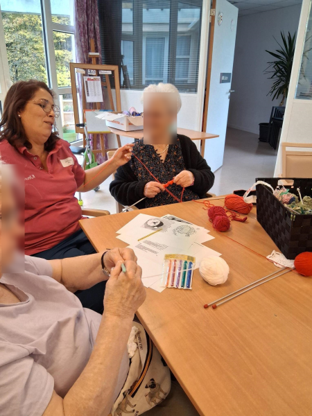Par la suite, quelques dames ont tricoté ou réalisé du crochet avec Ghizlane afin de faire quelques décos autour de Noël grâce aux matériels qu'une fille de résidente nous a laissé.