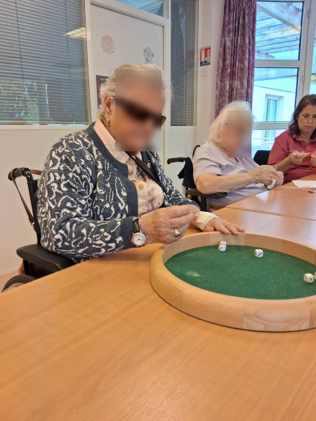 Pendant ce temps, Justine a joué au Yam's avec les autres résidents. Une belle après-midi conviviale tout en écoutant une musique de relaxation.